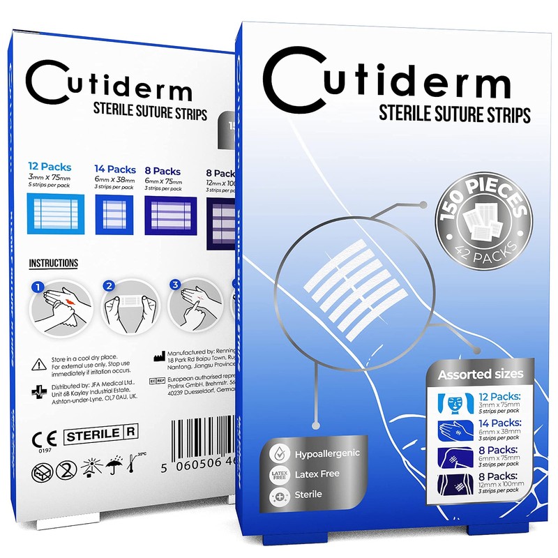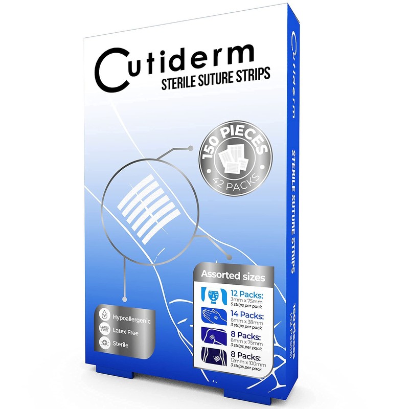 Cutiderm Sterile Skin Wound Closure Suture Strips, 4 Sizes - 150 Strips