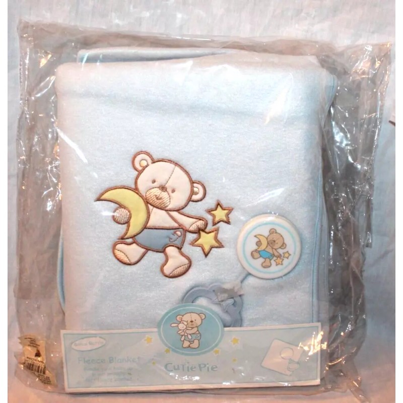 CUTIE PIE NEW IN PACKAGE VINTAGE CUTIE PIE FLEECE BLANKET AND RATTLE 30" X40"