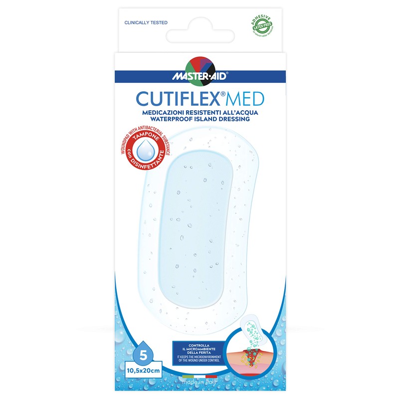 Medicazione in poliuretano, flessibile, elastica, sottilissima e trasparente che aderisce in modo ottimale e protegge la ferita anche in caso di immersione totale in acqua.
