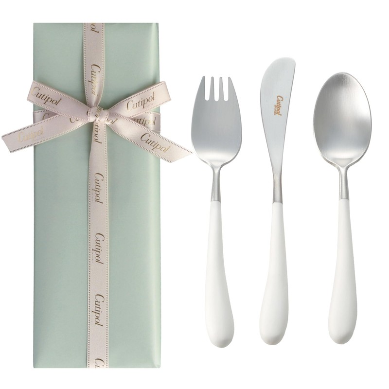 Cutipol Alice Set White/Matte Silver Children's Cutlery Set Ribbon Wrapping