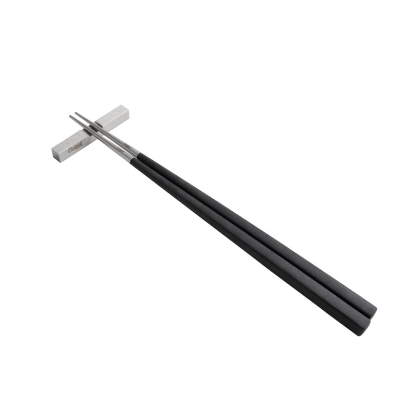 Cutipol KUBE Chopsticks + Chopsticks Rest Set, Black Silver KU39