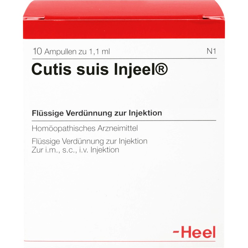 Cutis suis-Injeel, Flüssige Verdünnung zur Injektion Anwendungsgebiete: Registriertes homöopathisches Arzneimittel, daher ohne Angabe einer therapeutischen Indikation.