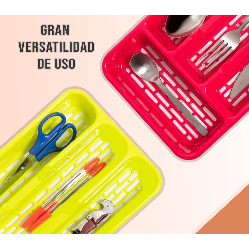 • DRAWER DESIGN: The cutlery rack has a slim and compact design that makes it ideal for placing in kitchen drawers. Its design allows you to save space on the counter and have your cutlery always at hand.