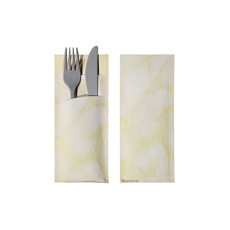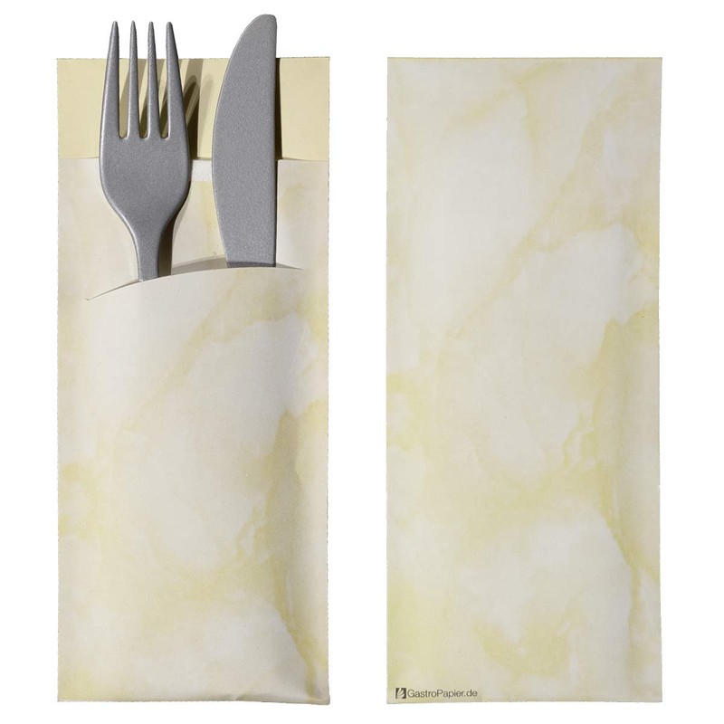 Cutlery Pockets with Napkin Cream Beige Marbled 20 cm Pack of 30