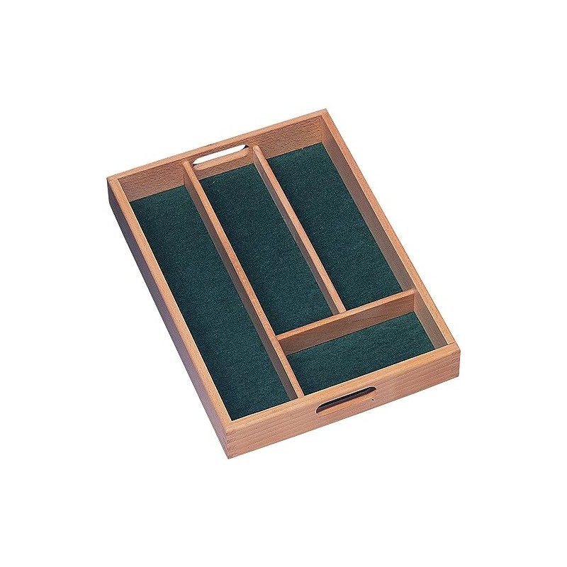 CUTLERY TRAY IN FSC BEECH WITH GREEN LINING Size Length 34.2 x Width 24.2 x Height 5 cm