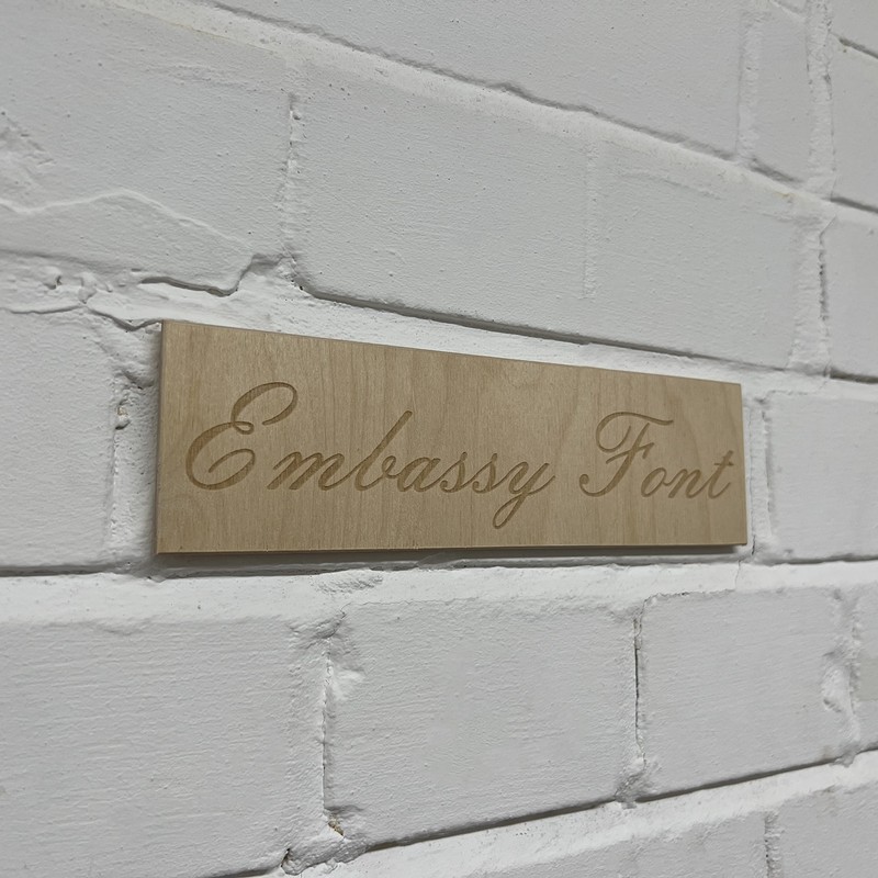 Cutncraft Designs Embassy Font Signs Engraved Wooden Sign Plaque Wall Door Hanging Gift Idea 21x6cm (8x2inch)