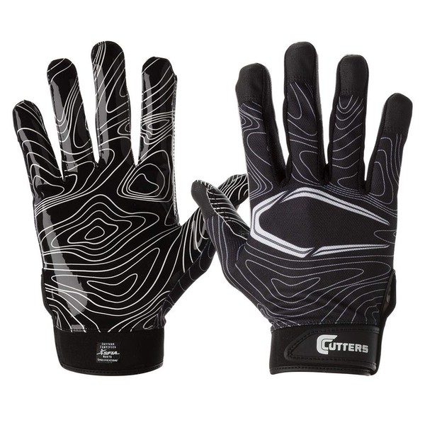 Cutters Football Glove Game Day Receiver. Silicone Grip Glove for Receivers. Adult and Youth Sizes, Black Topography, Youth - Large/x-Large