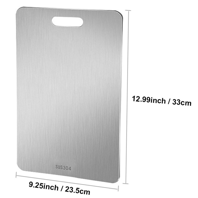 - Versatile: Double-sided 23x34cm (9x13.4 inches) cutting board made of durable 304 stainless steel for slicing, dicing, and chopping various ingredients.