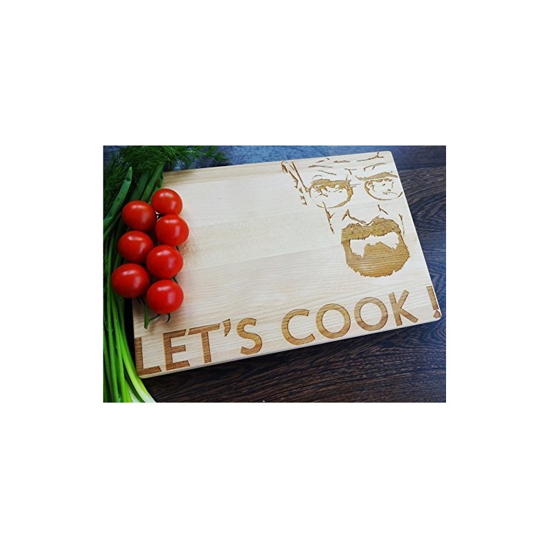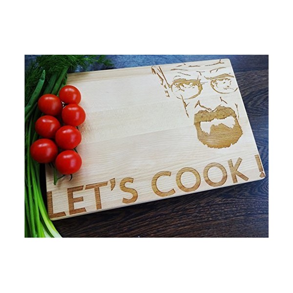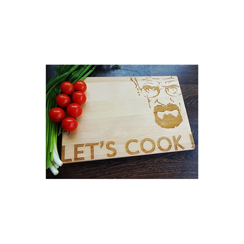 Cutting board LET'S COOK 15x10 inches BEECH wood handmade engraved wooden cho...
