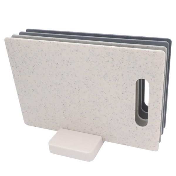 - Convenient Stand:This 4-piece set comes with a practical stand, providing a space-saving storage solution.The stand keeps your cutting boards organized and within easy reach, saving valuable countertop space in your kitchen