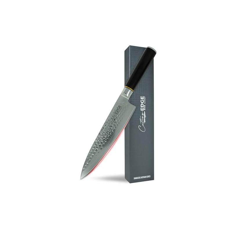 CUTTING EDGE CHEF - Damascus Hammered Chef Knife - 8 inch Blade - Hand-Polished Ebony Handle - Full Tang
