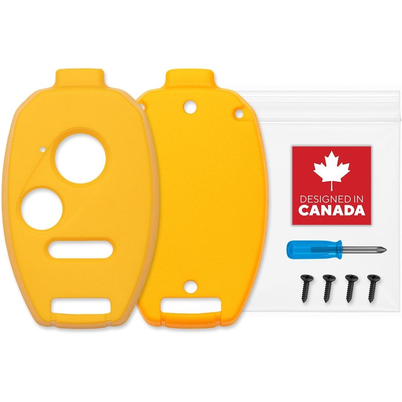 Cutting Not Required – Premium Key Fob Shell Case for Honda Civic, Accord, CRV, Pilot, Fit, Pilot, Ridgeline | Crack-Resistant & Durable | Seamless Fit | Easy DIY Install (Yellow - 3 Button V3)
