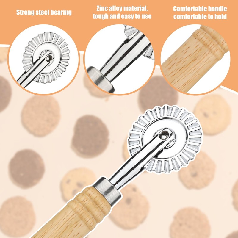 Cutting Wheel Dough, Ravioli Cutter with Wooden Handle Ravioli Flaring Cutter Pizza Dumpling Tip Making Dough Cutter Roller Pastry Cutter Tool for Home and Kitchen