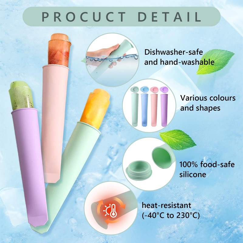 Diese wiederverwendbaren Silikonformen sind aus 100% lebensmittelechtem Silikon, BPA frei und garantieren Sicherheit für Ihre Familie. Perfekt für kreative Eiscreme, Wassereis und mehr.
