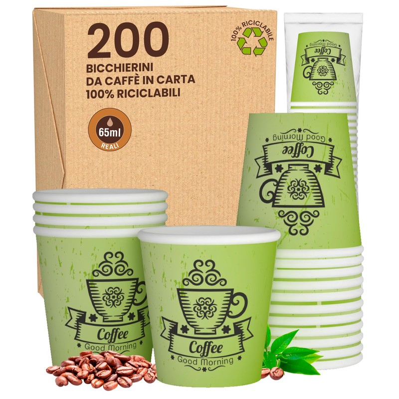 - Features: the disposable cups are perfect for the company, office, bar or to take with you, in the hotel and at home. The dimensions are: 50 mm diameter at the top, 35 mm diameter at the bottom, 50 mm high, and holds 65 ml of drink, ideal for espresso, long, macchiato...
