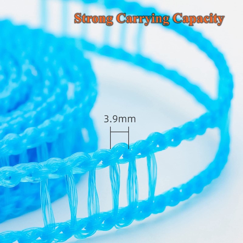 Cuzlarmul Portable Clothes Line, 10m Windproof Adjustable Clothes Drying Line, Non-Slip Fence Clothesline for Camping Travel Home (Blue)