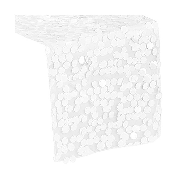 - PACKAGE INCLUDES: White large payette sequin table runner | 33cm x 274cm - 1 pc.