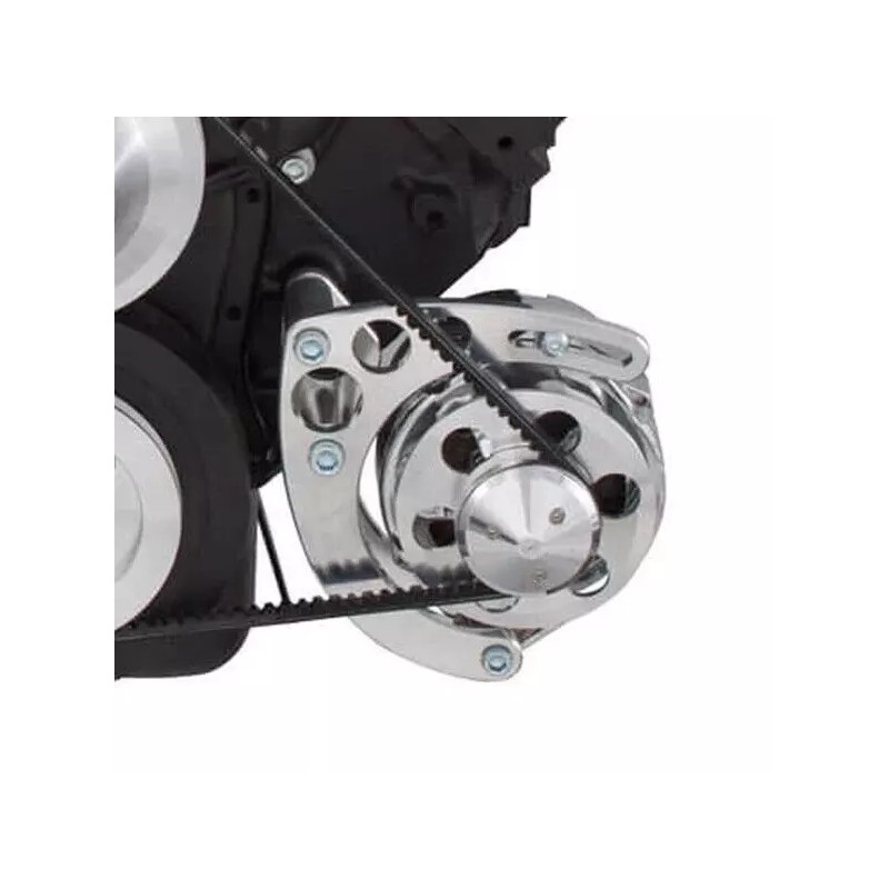 Chevy Big block alternator bracket for V-belt applications. Designed for use with OEM or CVF Racing pulleys. Use with Short Water Pump Pulleys. Mounts alternator low on the driver side.