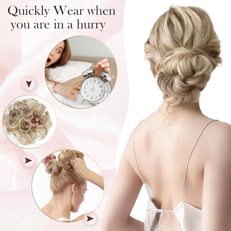 - ✅ Effortless Application - In just a few minutes, transform your look with this easy-to-use hair bun piece. Simply tie your hair into a ponytail or bun, secure the hair scrunchie, and voilà! A stylish new hairstyle is ready to take you from day to night.