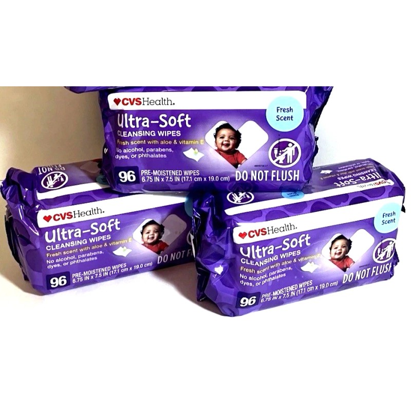 CVS, CVS Health  3-Lot (96x3) CLOTH Aloe/Sensitive