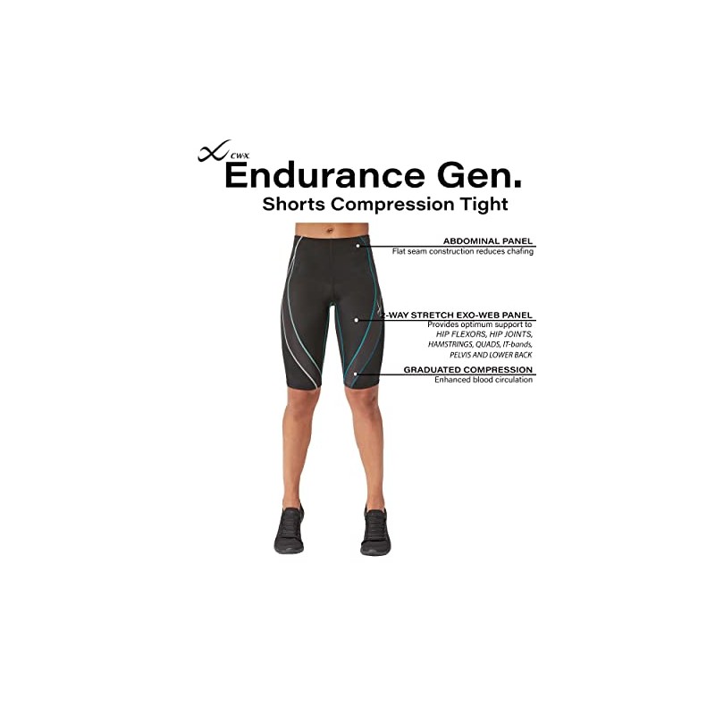 CW-X Women's Endurance Generator Muscle & Joint Support Compression Short, Black/Deep Lake, S
