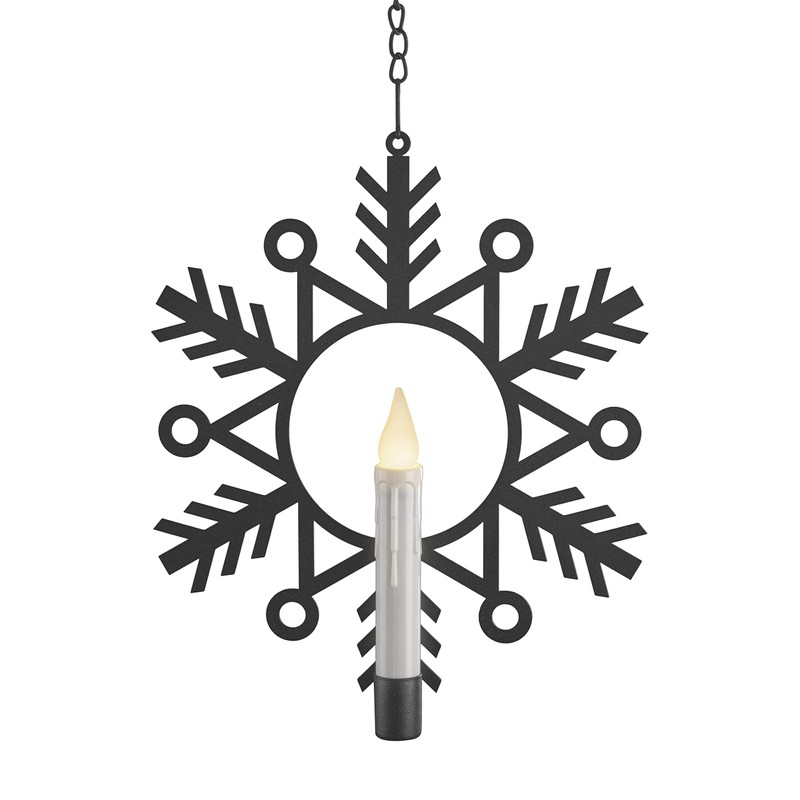 Put these beautiful snowflake metal wreaths with warm white flame candle in your window to brighten up your holiday season or any time year round. With it's 8 hour repeating timer this candle will come on the same time everyday for 8 hours or you can turn on the flame by just twisting the flame. Because it uses an LED light source the bulb never needs to be replace. Each candle runs on 2 AA alkaline batteries, sold separately.