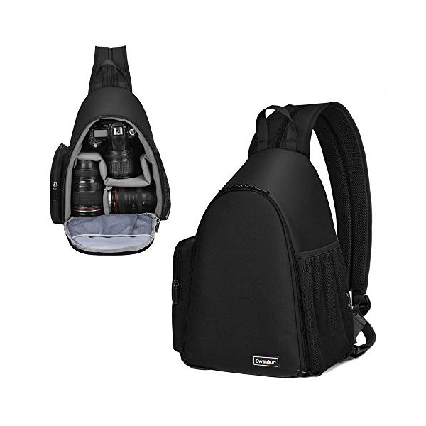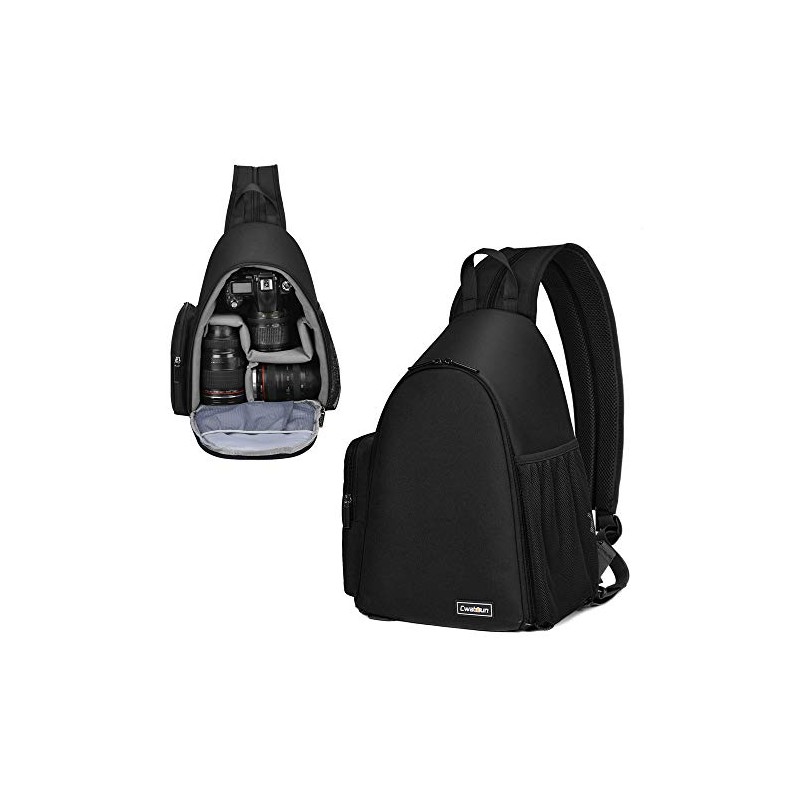 Cwatcun Camera Bag, Sling Camera Case Shoulder Backpack with Tripod Holder for Canon Nikon Sony Pentax DSLR SLR Mirrorless Cameras Black