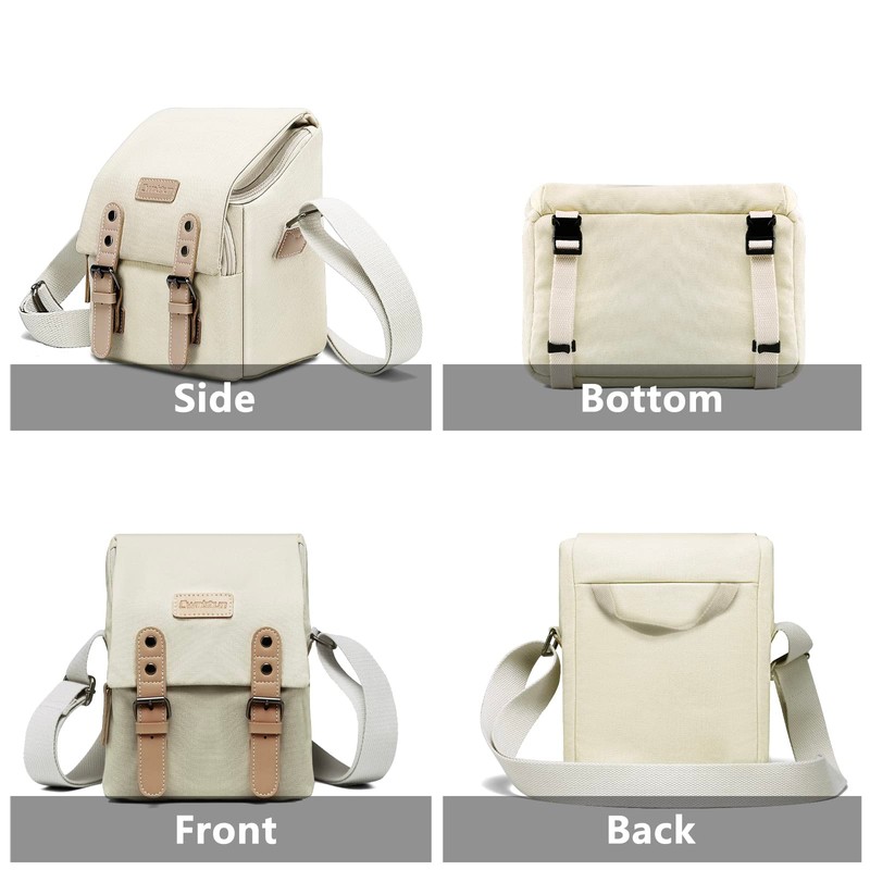 Cwatcun Compact Camera Bag Case Canvas Leather Trim Compatible for Nikon, Canon, Sony Mirrorless Camera and Lenses Waterproof, Camera Shoulder Messenger Bag Beige