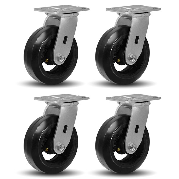 CWfutureparts Caster Wheels 6" x 2" Heavy Duty Industrial Casters,Rubber on Cast Iron Wheels,Dumpster and Trash Bin Casters,4 Swivel Top Plate Casters, Load Capacity 4000 lbs