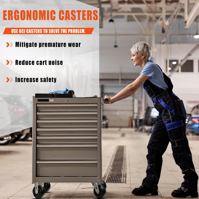 • 【Mold-On Rubber Cast Iron Wheels】:Moldon rubber is bonded to a cast iron core. These wheels are quiet in operation and absorb shock and vibration. They help prolong equipment life and protect cargo.