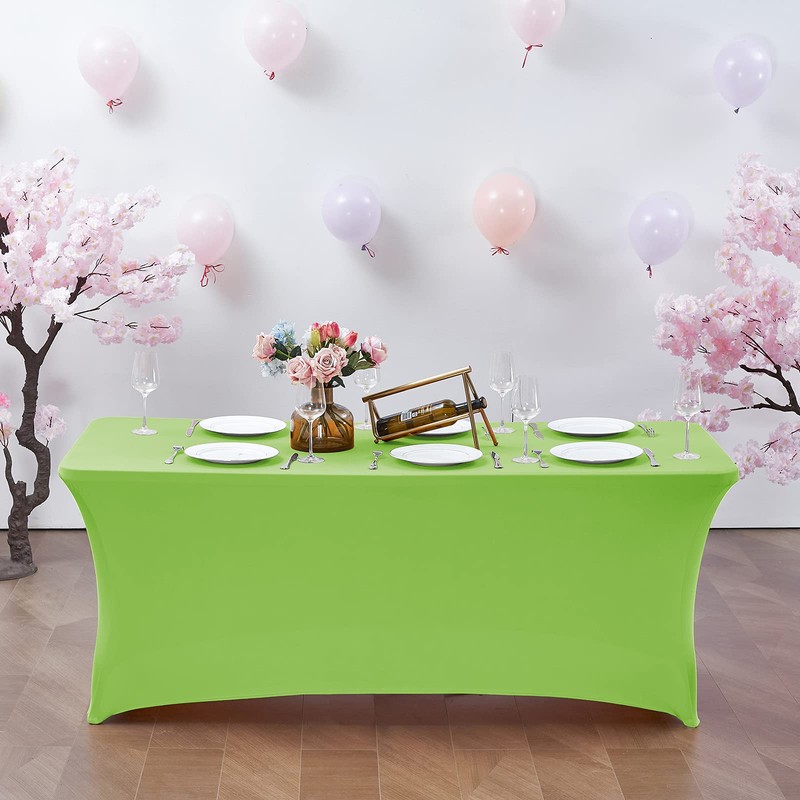 CWK 6FT Stretch Spandex Table Cover for Rectangular Fitted Folding Tables, Wrinkle Resistant, Elastic Stretchable Patio Tablecloth Protector for Party, Banquet, Wedding and Events (Light Green)
