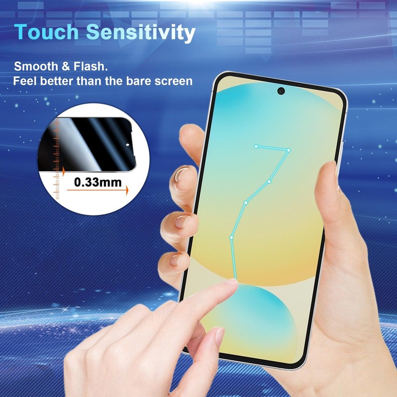 Fit for: Galaxy S24 FE 5G Screen Protector. Not with any other model.Why choose our tempered glass screen protectors for your Galaxy S24 FE?1.Protect your Galaxy S24 FE 5G with this 2+2 pack of privacy screen protectors and camera lens tempered glass.2.The privacy film safeguards your sensitive information from prying eyes, ensuring anti-spy protection while maintaining high clarity.3.The camera lens tempered glass offers scratch resistance and shatter protection.4.This combo pack provides comprehensive coverage for your device's display and camera.5.Enjoy bubble-free installation and a seamless viewing experience.6.Upgrade your Galaxy S24 FE 5G's security and durability with this essential accessory pack.Package Details:2 x Galaxy S24 FE /S24 FE 5G & Privacy Screen Protector2 x Camera Lens Protectors2 x Dry Wipe & Wet Wipe2 x Dust-absorber