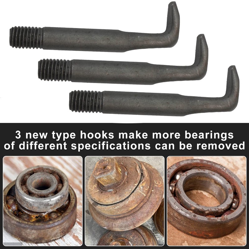 • 【Features】 - The bearing puller comes with six different sizes of premium red steel extractors which can fit for a variety of shapes and sizes of bearings. The Innovative 3-jaw hooks are added for ease of disassembly.