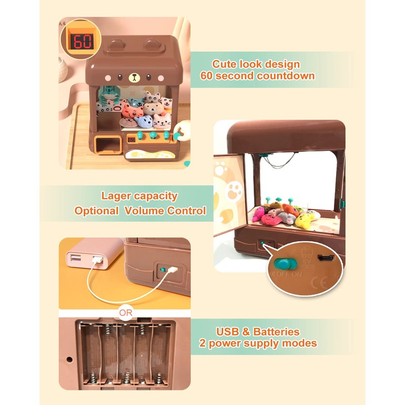 - 【Optional Volume Control & Flashing Lights】The claw game machine feature flashing LED lights and 2 kinds of authentic arcade machine-style music with moderate volume. Also, there’s an option to turn this machine on without sounds according to your liking.