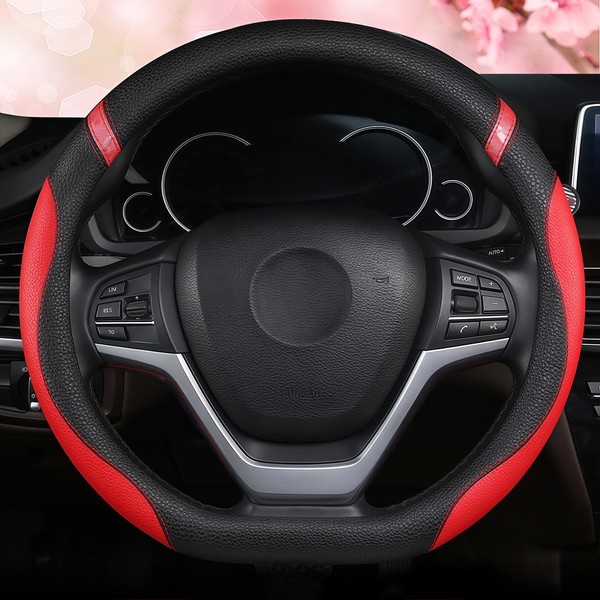 Cxtiy D-Shaped Flat Bottom Steering Wheel Cover for Women Girl - Stylish Car Accessory (Red)