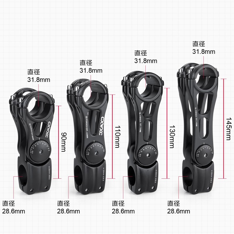 CXWXC Stem, 140 Degree Angle Adjustment, Clamp Diameter/1.2 inches (31.8 mm), Handle Stem, Bicycle Adjustable Stem, 3.5 inches (90/110/130/145 mm), Compatible with City Cycles, MTB, Road Bikes, Cross Bikes, Etc. Ahead (XT-AS822-145)