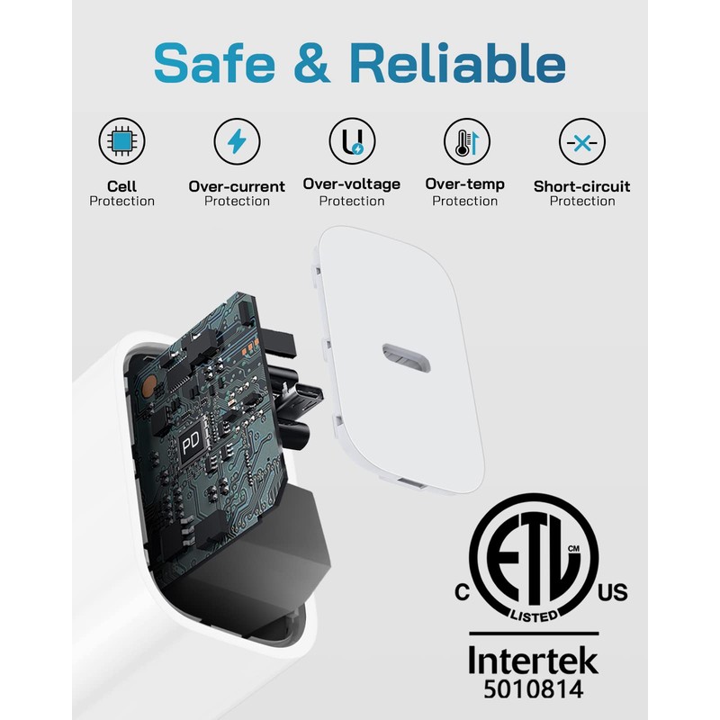 - [Superior Safety] Conforms to the ETL safety standard, this charger fast charging features a total of 10 safety features including short-circuit protection, high-voltage protection, and temperature control so that you can rest easy while charging your devices.