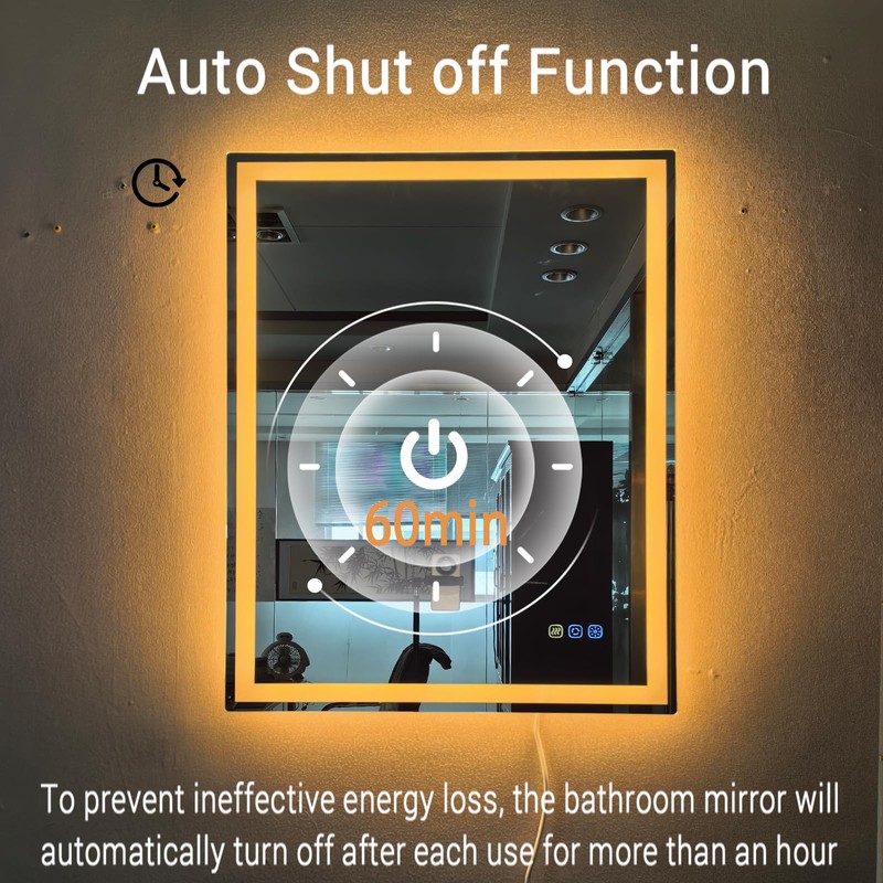- Auto Shut off Function:The electrical parts are safely built into the waterproof box, providing a DC12V safe voltage and ensuring safe lighting in wet bathroom environments. For your convenience, the power (light/defogger) will automatically turn off after an hour of use to help you save energy