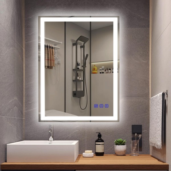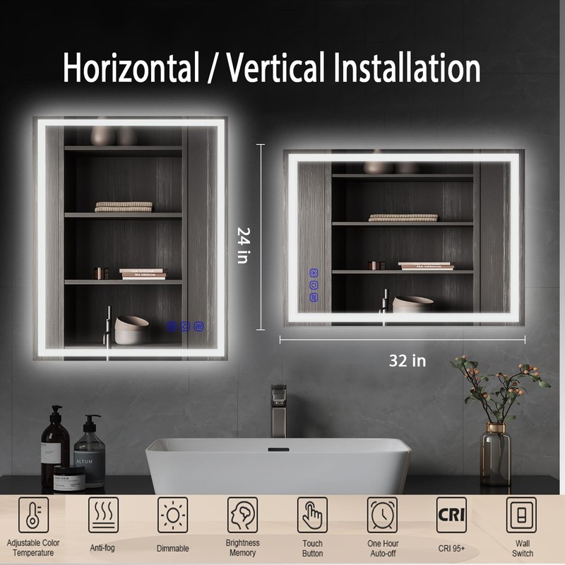 cxxsom Led Mirror Bathroom Lighted Wall Mirror with Lights Smart Vanity Makeup Mirror 32x24 Frontlit and Backlit Stepless Dimmable Change Adjustable,Touch Switch Memory Function,Shatter-Proof,AntiFog