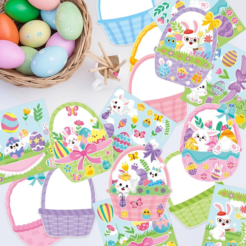 CY2SIDE CY2SIDE Easter Basket Scene Stickers - 12 Sets of Easter Theme Basket Stuffers Art Craft Kit for Kids School Activity Make Your Own Egg Rabbit Scene Stickers Game Party Favor DIY Spring Treat Gifts