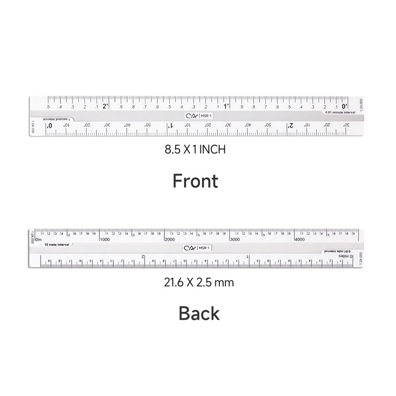 CYA Clear Scale Ruler Maptool 1:24,000 Scale Map Reading Professional Protractor Accurate Learning for Poltting Utm, USNG, Mgrs Coordinates