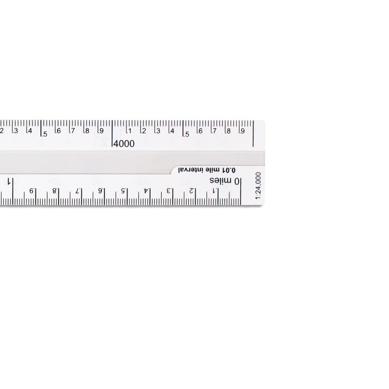 • On the back side, the ruler has distance in meters on one edge, and distance in either miles on the other edge. 10 meters & 0.01 miles
