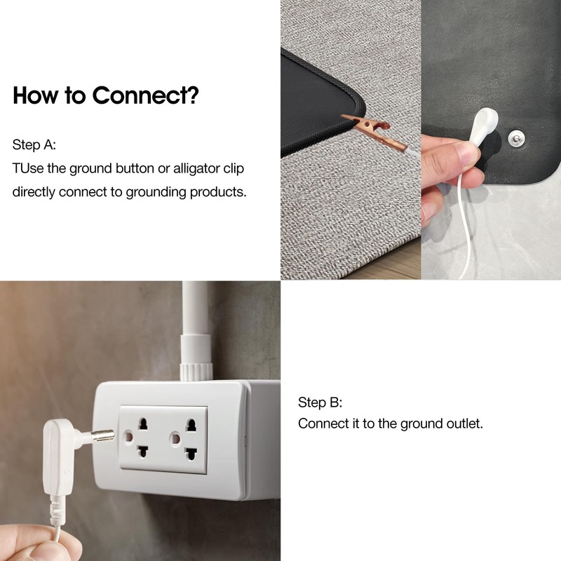 - Easy to Use Use the side with the grounding hole with the grounding product, or use the alligator clip that connects with the grounding product. Then plug the other end of the grounding wire into the outlet. The grounding wire with two wires can be easily connected with the double grounding product.