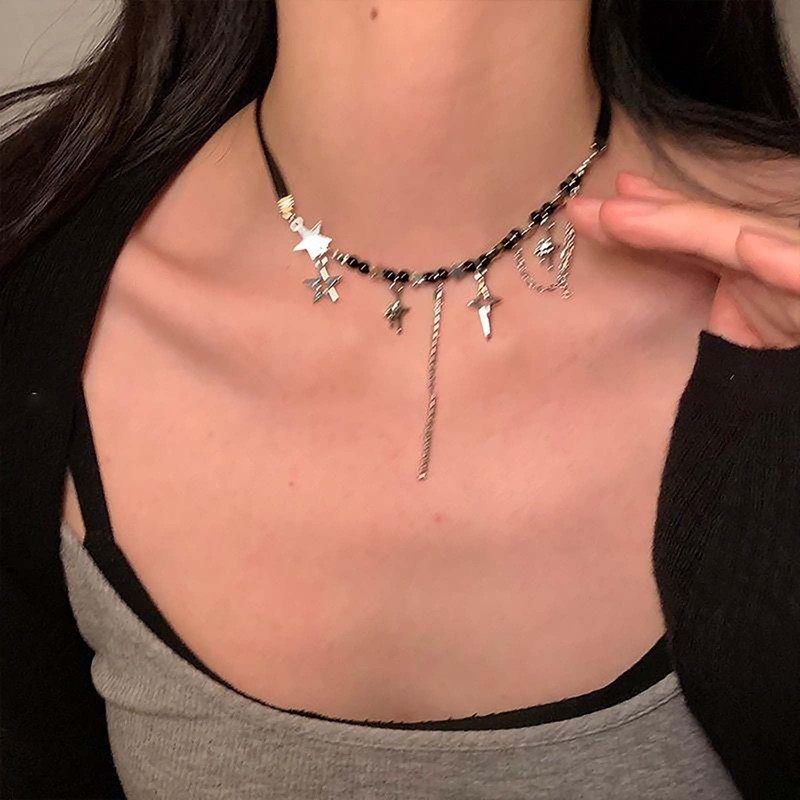 Cybche Boho Himmlischen Stern Choker Halskette Schwarzes Leder Halsband Halskette Stern Leder Halskette Faux Onyx Perlen Halskette Glück Stern Halskette Schmuck Für Frauen