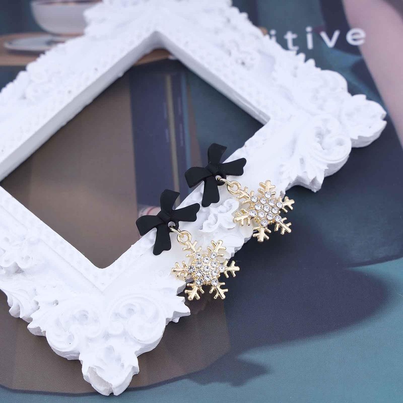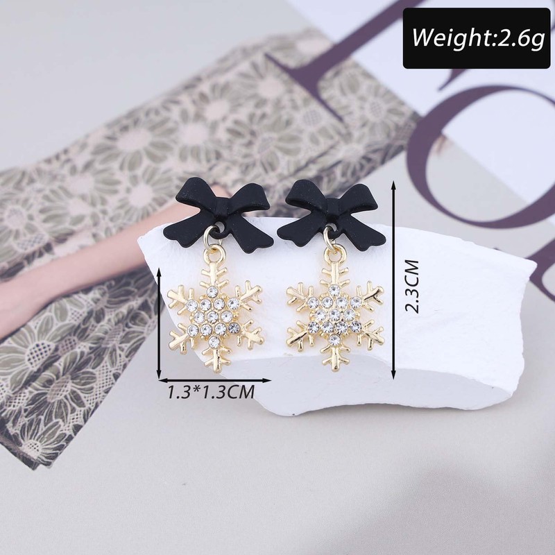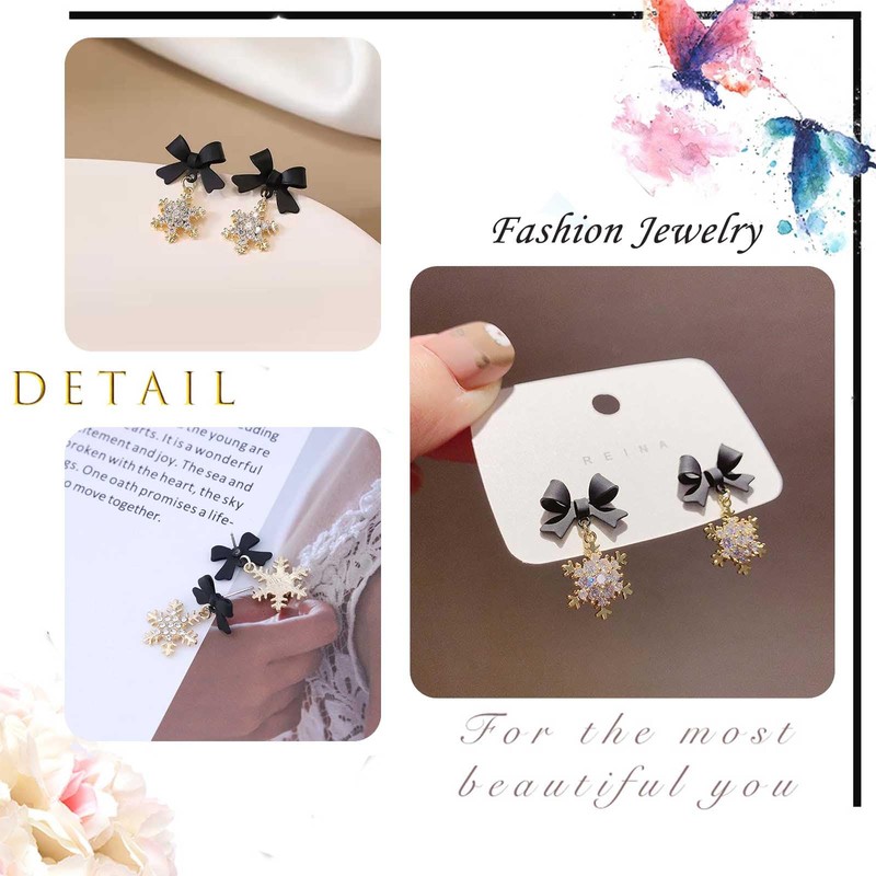 Cybche Crystal Snowflake Bow Earrings Black Acrylic Bow Stud Earrings Rhinestone Snowflake Dangle Earrings Gold CZ Snowflake Drop Earrings Christmas Snowflake Earrings Jewellery For, Zinc