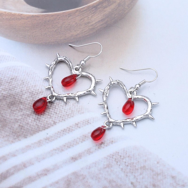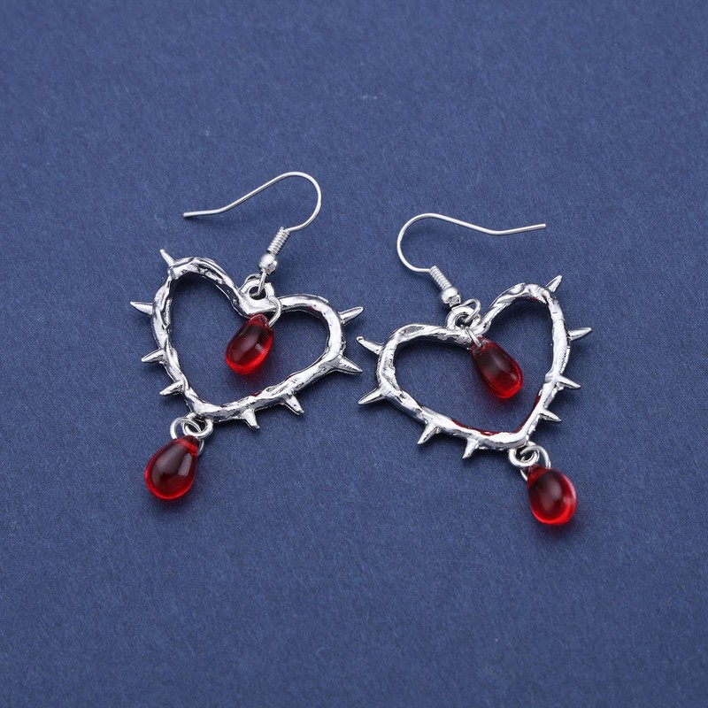 - Thorn heart drop earrings.Item Details:Handmade Item.Size:As Shown.Color:Red.Materials:Ordinary Alloy.Location:Ear.Style:Punk/Gothic.There will be slight errors due to manual measurement.Due to the shooting environment,there will be slight color difference.