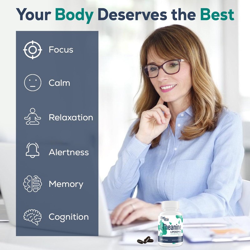 - High Potency L-Theanine: Our liposomal supplement provides a market-leading 500mg of L-Theanine per serving, which is significantly higher than the 100-200mg typically offered by most competitors. Experience the transformative difference that a truly premium dietary supplement can bring to your daily routine.