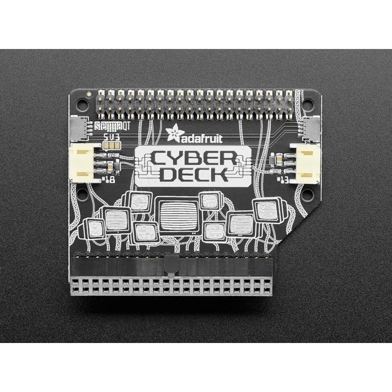 • Well, we just fenced 12 megabytes of ram and some angled socket header from the underground hacker club next to the chatsubo, and it's a major upgrade to our extender board - now you can jack in any Pi bonnet into the back of your Pi 400's skull at a cool angle, perfect for augmenting your deck! We also give you two STEMMA (JST 3-PH) connectors on GPIO #18 and #13, and twin STEMMA QT I2C port plugs, for additional upgrades (cables sold separately)