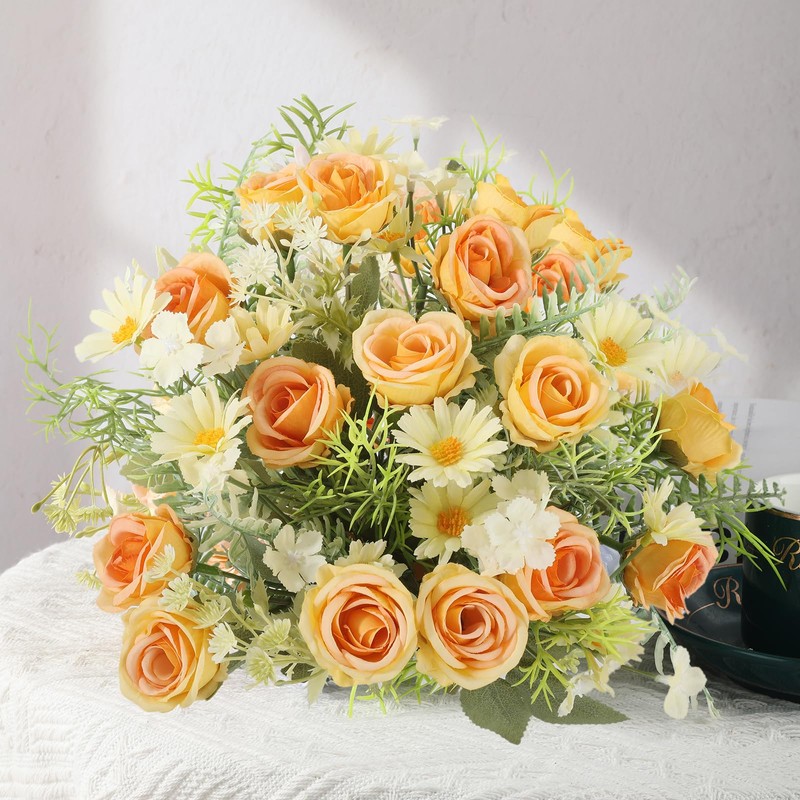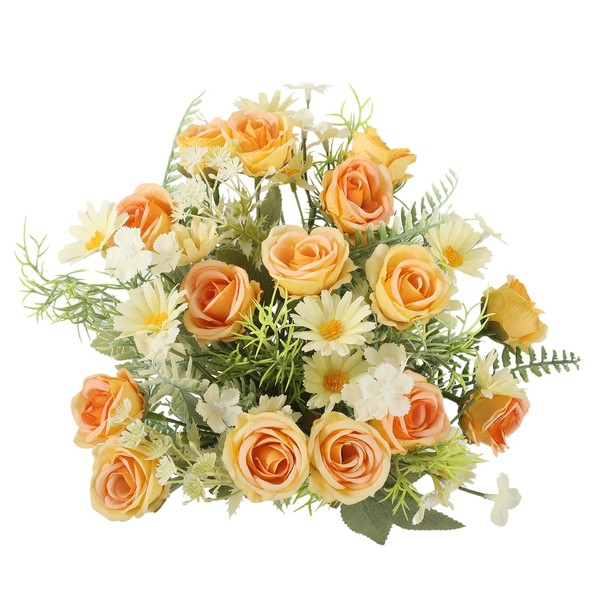 - 【Artificial Bouquets】Main flowers of the silk flower bouquets are roses,small daisies flowers and some plastic flower spikes and leaves,all flowers are look beautiful and vivid.