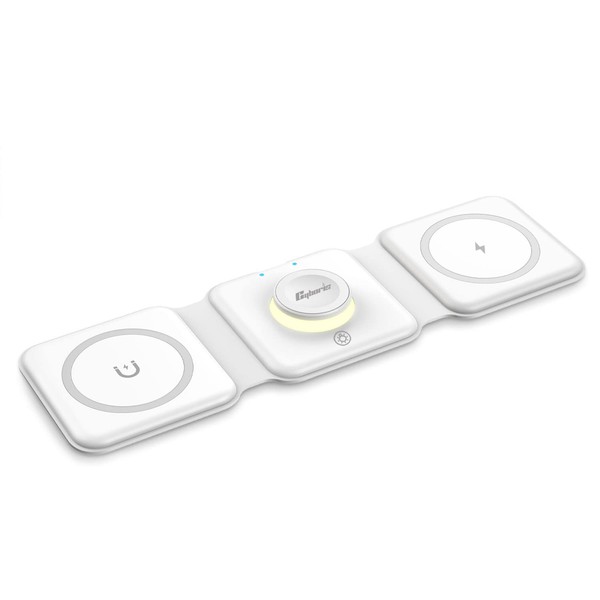 - Lightweight and compact: the soft silicone can be folded freely and is easy to carry, a charging station for iPhone is enough for business trips and travel. Built-in strong magnets, accurate positioning, becomes a phone stand in seconds.
